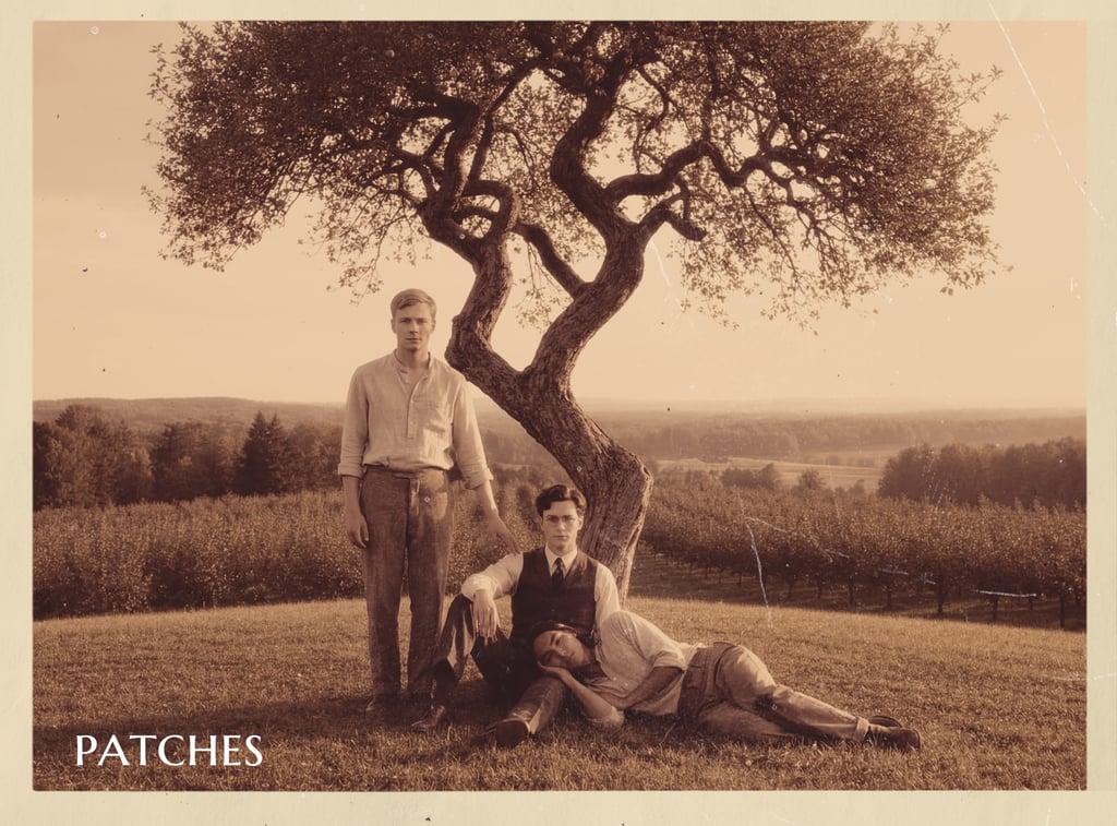 Patches opens with a frame story set in the 1990s, where Robert Johnson is thrust into a terribly timed, unwanted role of caretaker for his estranged Great Uncle Ben, a reclusive relative relative Robert has never met and barely ever heard anything about his entire life. Soon, he discovers Uncle Ben's diaries. As Robert reads, the Prohibition-era story unfolds—a tale of three friends bound together by an apple tree they rescued and planted, a symbol of resilience that mirrors Ben's decades of silence.